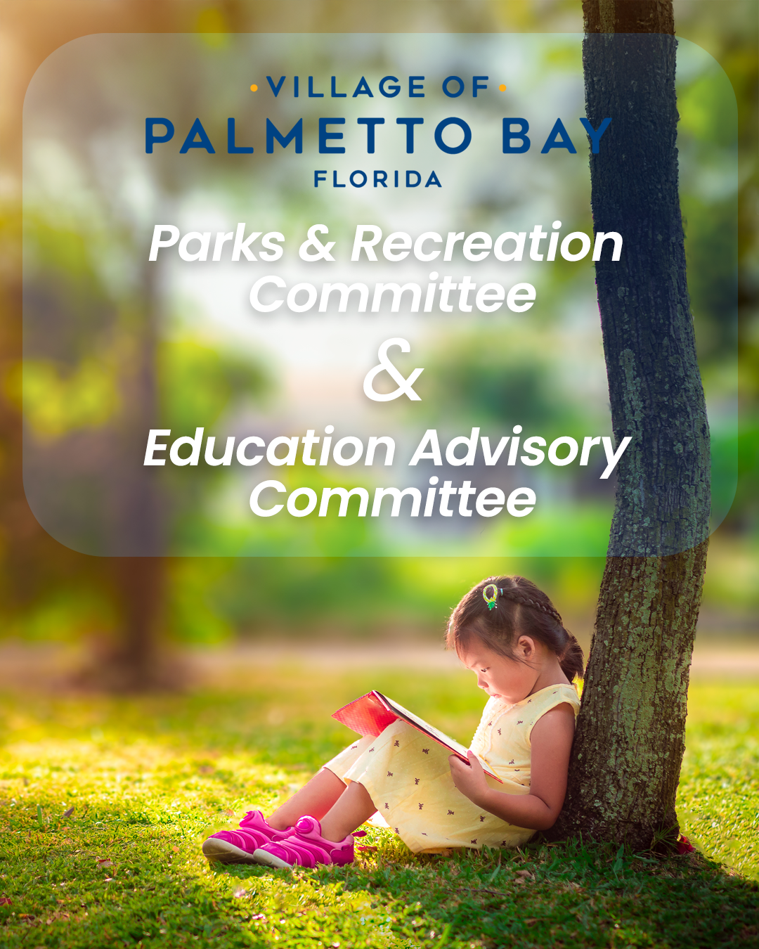 Nothing is more important than the wellbeing of our children, and as a member of our Education Advisory Committee, you can be a positive force for all the students, parents, and teachers in Palmetto Bay! This committee serves the Village by reviewing and supporting the terms of the Education Compact that was entered into between the Village and Miami-Dade County Public Schools. Follow the link to learn more or apply!