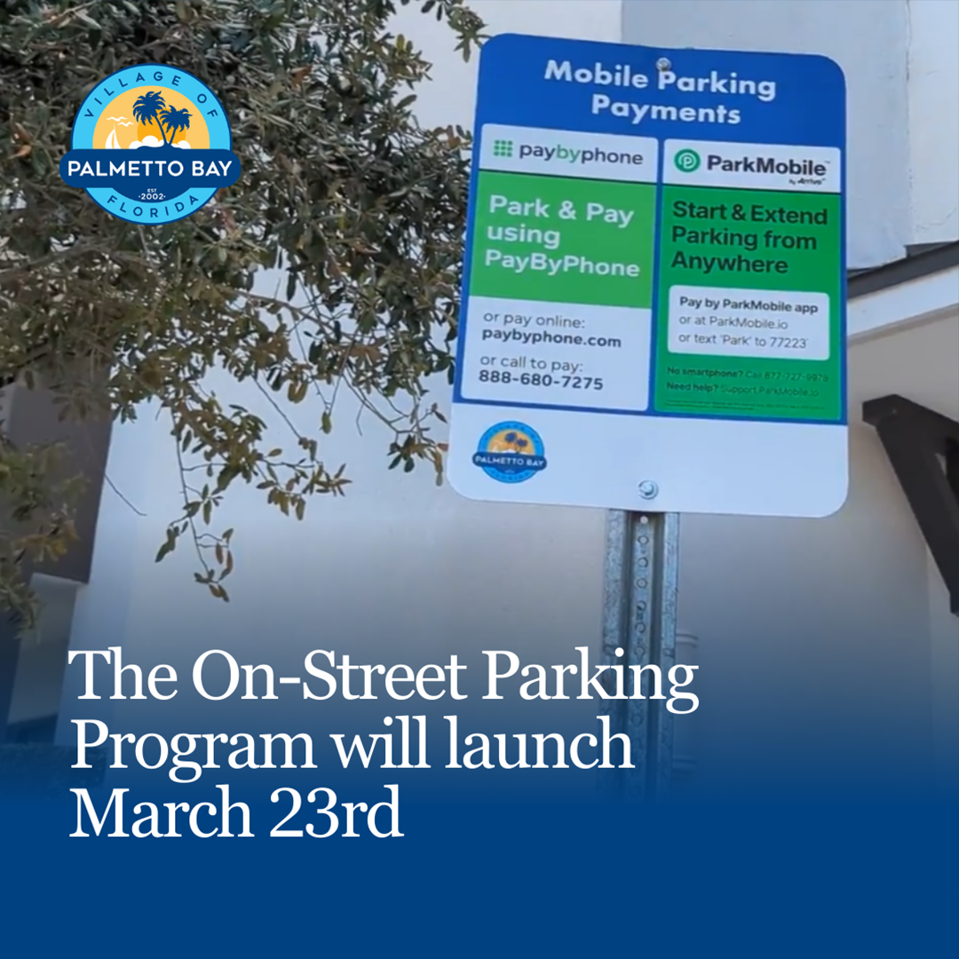 The Village of Palmetto Bay has introduced a new parking management program in partnership with the Miami Parking Authority (MPA) to improve accessibility, safety, and overall parking efficiency throughout the community. Click below to read all about it.